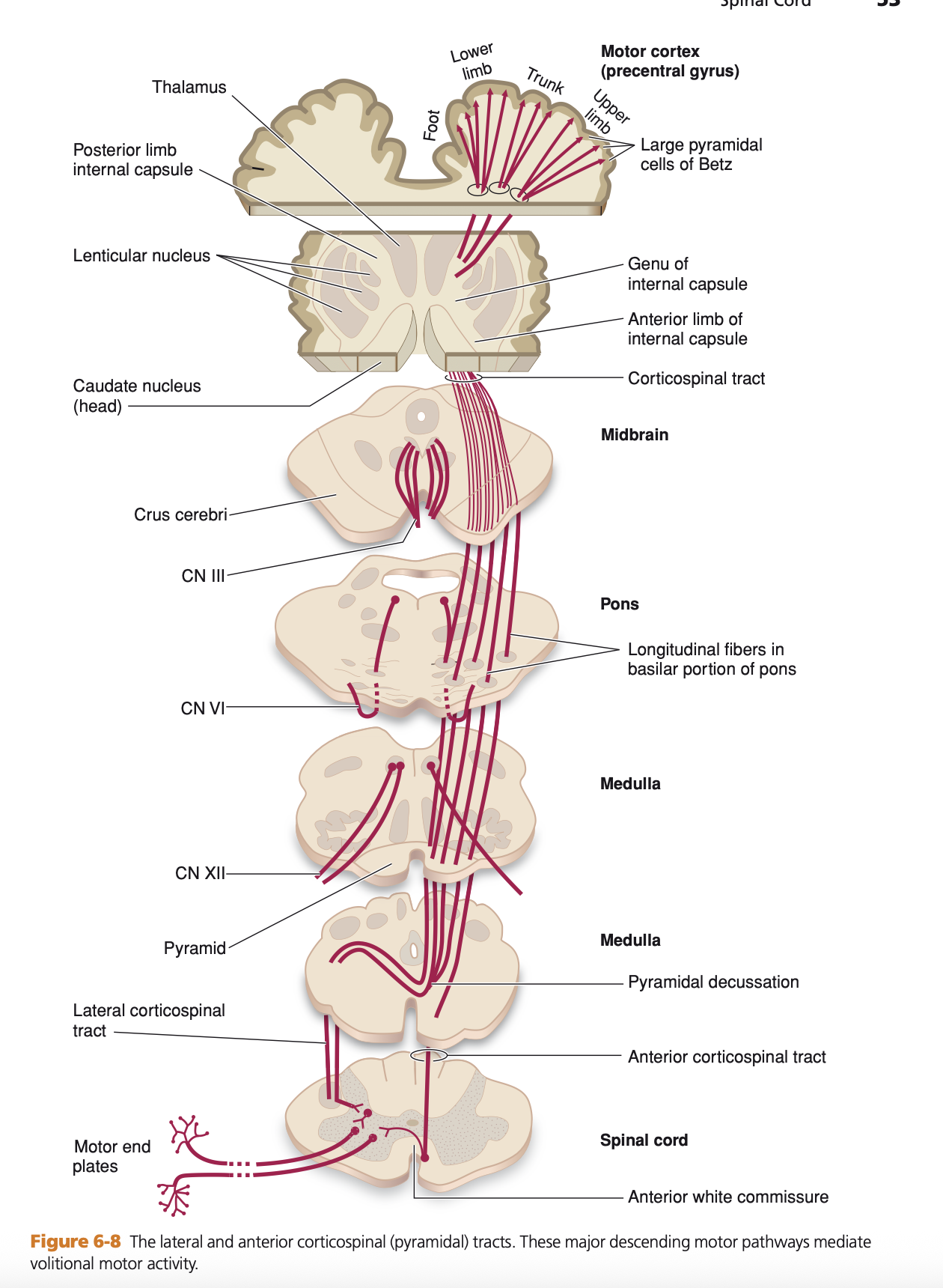 | Pyramids | Contains Corticospinal Tract. Decussation marks the border between Medulla and Spinal Cord. |