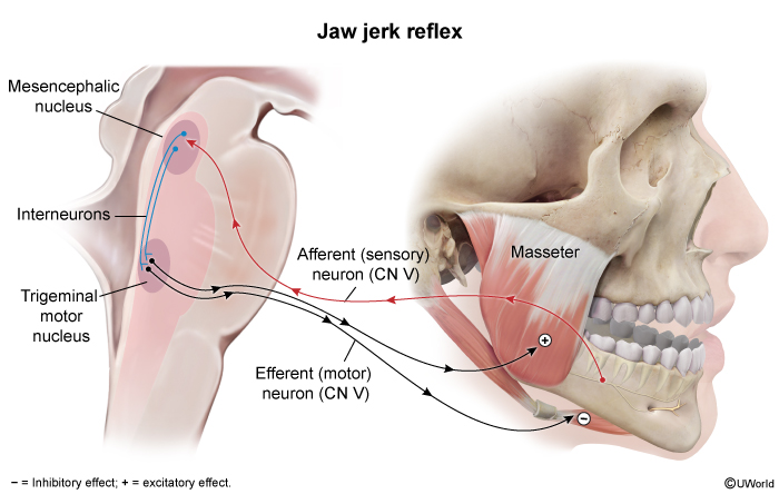 • The Three Reflexes: Gag: CN IX (In), CN X (Out). Cough: CN X (Internal laryngeal - In), CN X (Recurrent laryngeal/Phrenic/Intercostals - Out). Jaw Jerk: CN V3 (In), CN V3 (Out).